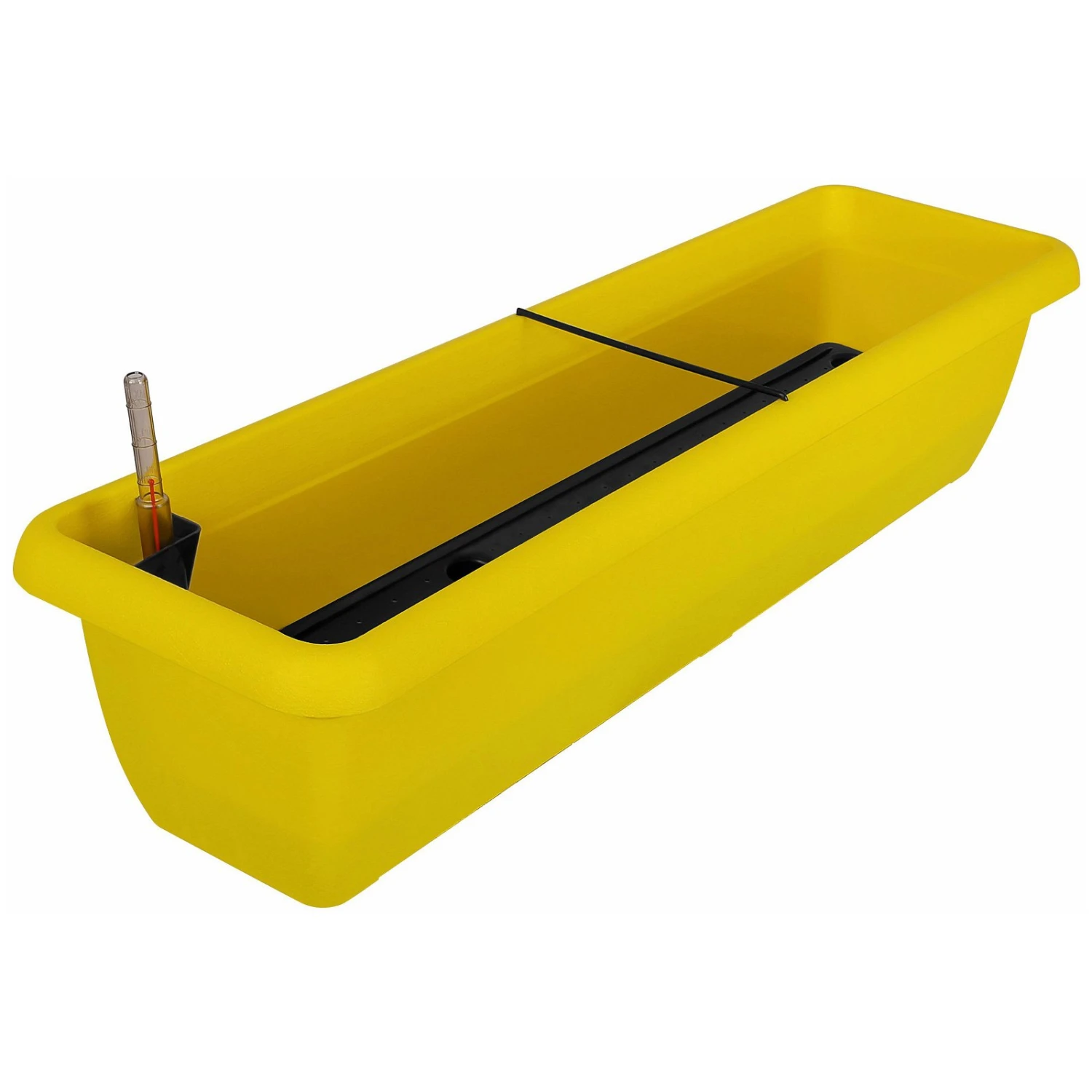 Dieser Balkonkasten begeistert mit leuchtend gelber Farbe und überzeugt mit durchdachtem Design. Der Bewässerungskasten ‚Aqua Andalucia‘ verfügt über ein intelligentes Wasserversorgungssystem und hält das Substrat sogar während der Sommerhitze feucht. Zur Kontrolle lassen sich die Wasserstandanzeiger in die vorgesehenen Halterungen einsetzen.