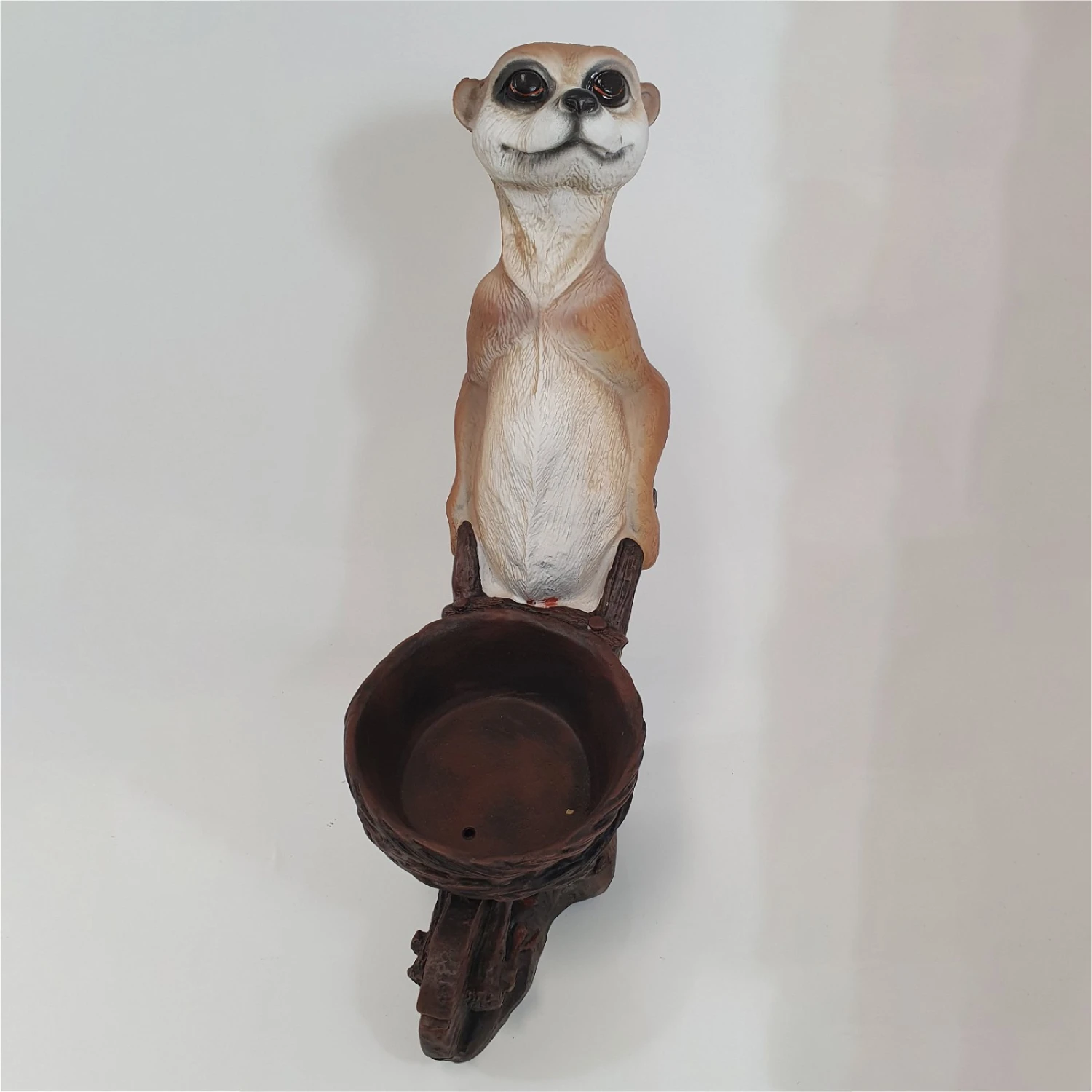 Das sympathische Erdmännchen ist gerne bereit, Ihnen im Garten zu helfen. Seine Karre hat der treue Helfer immer dabei. Diese handbemalte Gartendekoration aus strapazierfähigem Polyresin ist UV-resistent und witterungsbeständig. Daher spricht nichts dagegen, die Erdmännchenfigur ganzjährig draußen einzusetzen.
