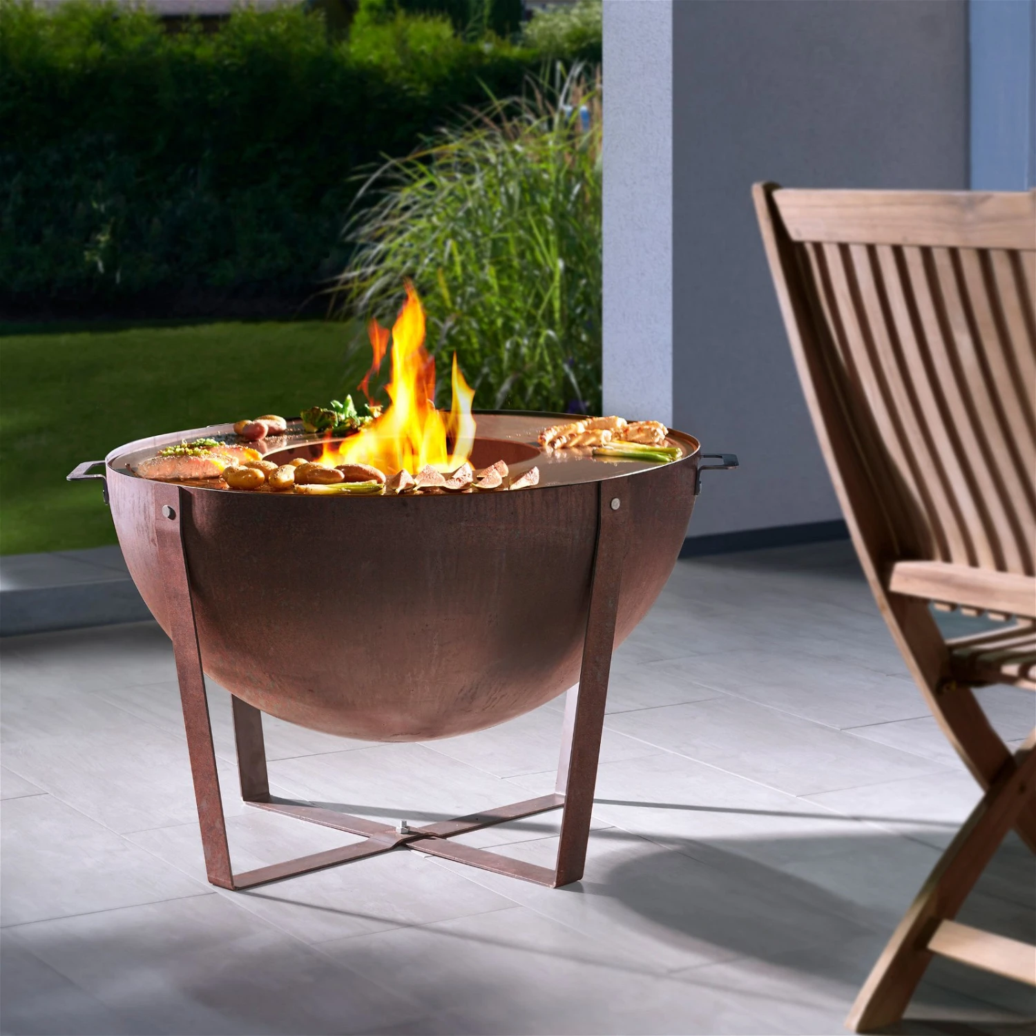Die Feuerschale ‚Dakota‘ aus Cortenstahl lässt im Außenbereich eine rustikale, behagliche Atmosphäre entstehen. Dieses Gartenaccessoire aus dem Hause Buschbeck spendet an einem kühlen Abend wohlige Wärme und verzaubert mit magischem Tanz der Feuerzungen. Auf Wunsch verwandeln Sie die Feuerschale in einen vielseitigen Plantscha-Grill.