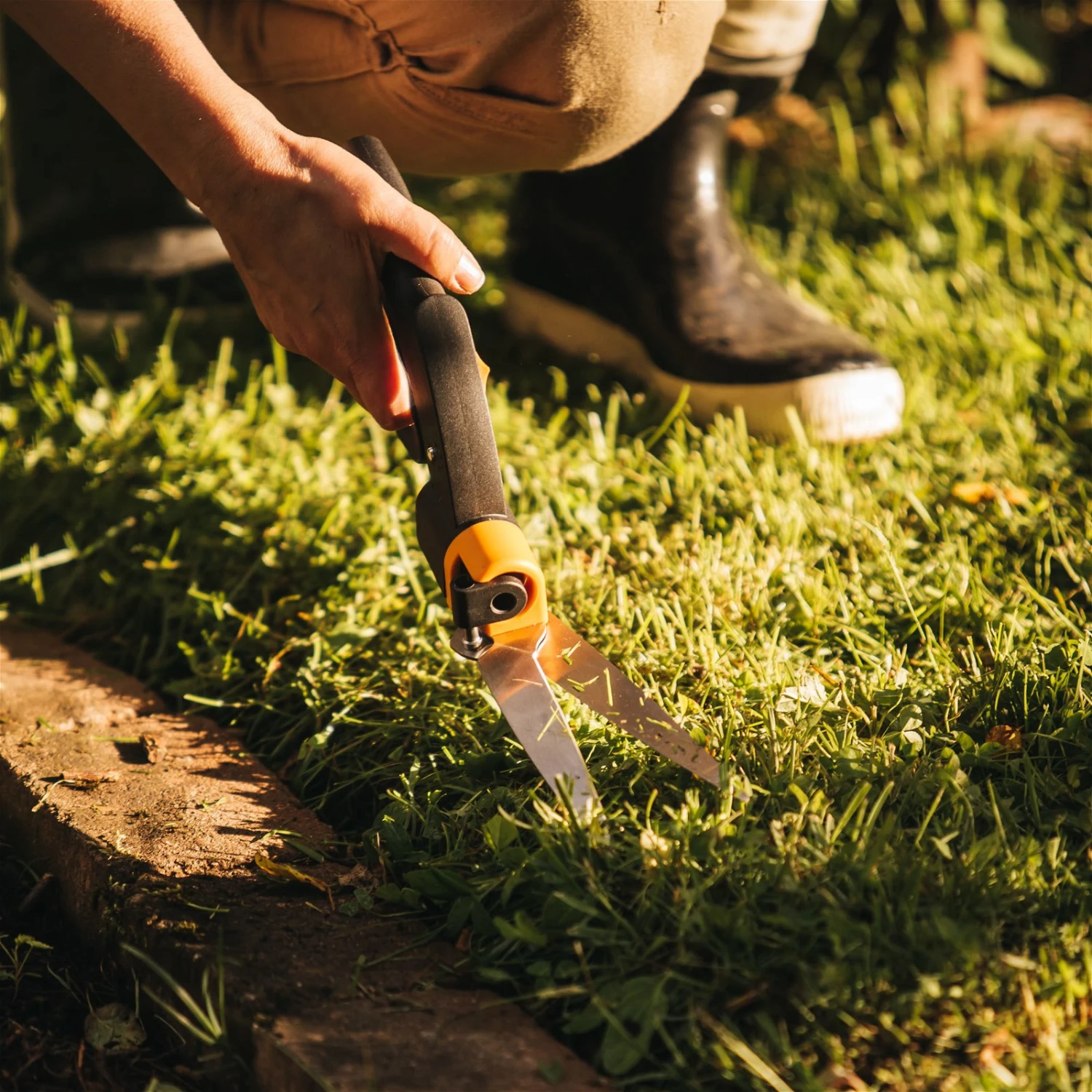 Die Rasenkantenschere eignet sich optimal zum einfachen und präzisem Schneiden von Gras. Das ergonomische Design und das geringe Gewicht ermöglichen eine angenehme Gartenarbeit. Durch den drehbaren Scherenkopf gelangen Sie problemlos in jede Ecke.