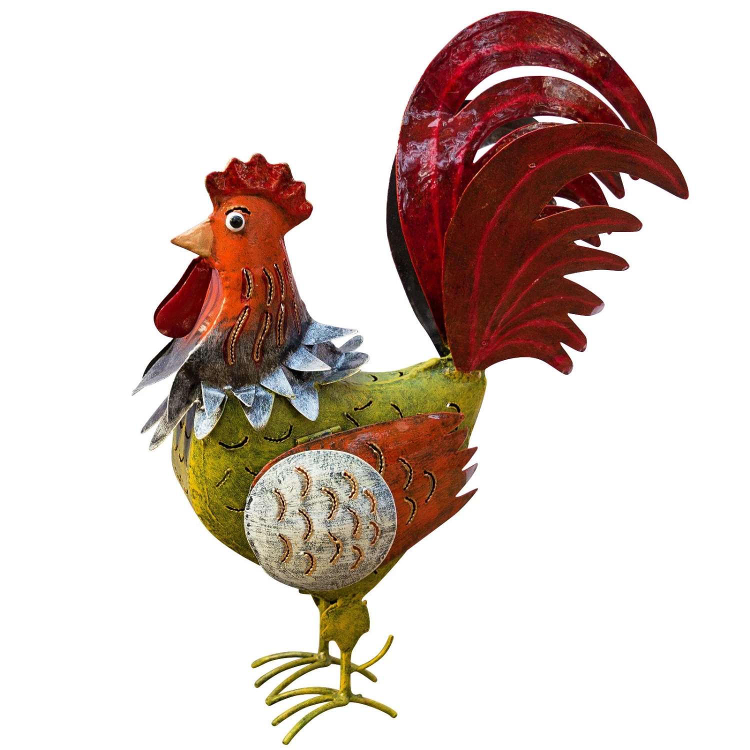 Der kleine Hahn Erich ist ein echter Hingucker auch in Ihrem Garten. Von Hand geformt und bemalt, ist jede einzelne Gartenfigur ein Unikat, das alle Blicke auf sich zieht. Da er aus robusten Stahlblechen und einer hochwertigen Grundierung ist, können Sie ihn Sommer wie Winter bei jedem Wetter im Freien stehen lassen. Die Schweißnähte werden entgratet, verputzt und gereinigt. Auf der fertigen Figur sind diese „Narben“ des Produktionsprozesses komplett verschwunden. Anschließend nimmt der Hahn Erich ein Bad in der Grundierung, die gut trocknen muss bevor künstlerisch versierte Mitarbeiter viele, kleine Details auf die Figur malen. Mit grünen, roten sowie orangenen Lackierungen erwacht Ihr Hahn Erich förmlich zum Leben. Besonders wohl fühlt er sich zwischen Ihren Lieblingsblumen.