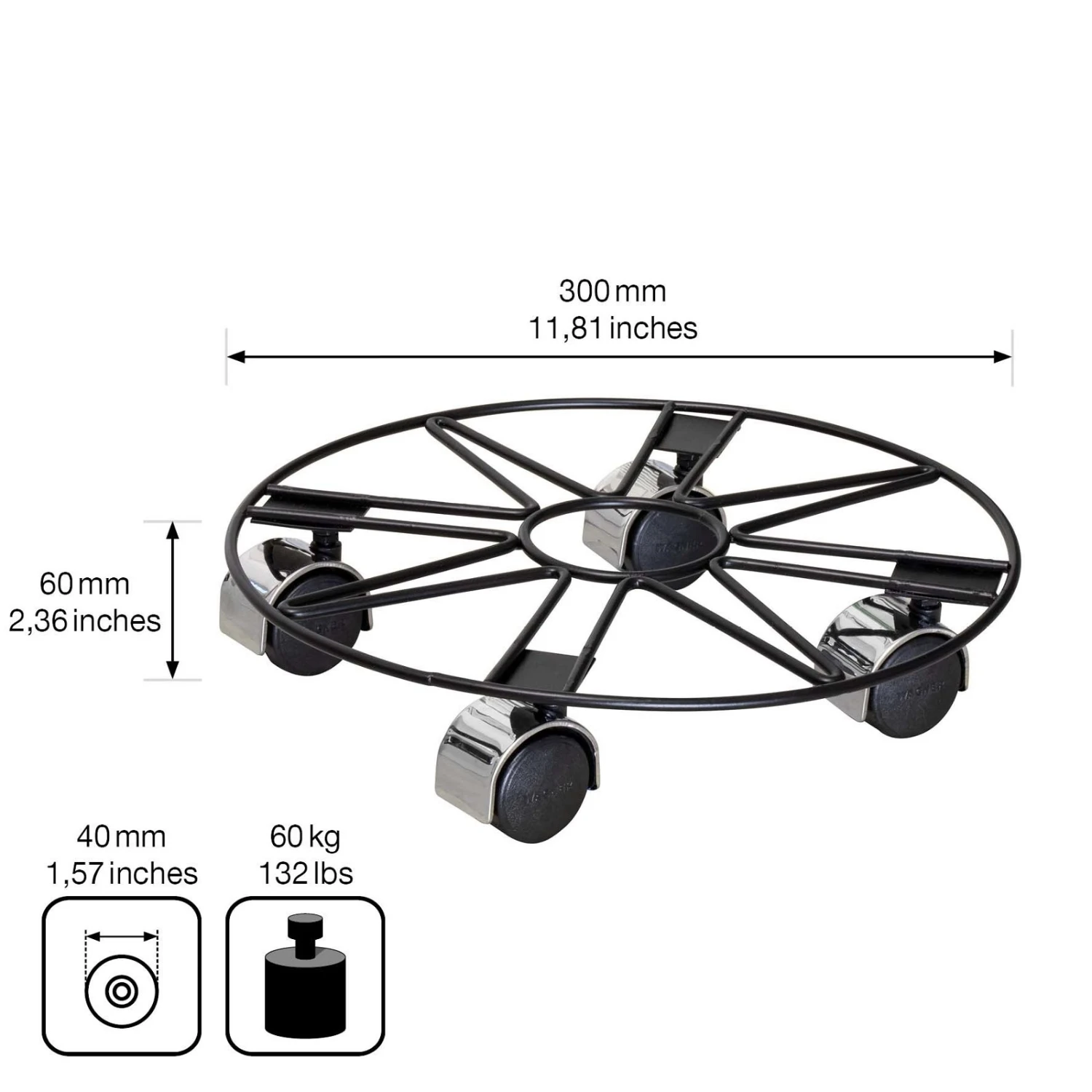 Wenn es darum geht, Ihre Lieblingspflanzen mobil zu machen, bietet sich der Multi Roller GH0938 aus strapazierfähigem Stahldraht als eine praktische und ansprechend gestaltete Lösung an. Der Pflanzenroller überzeugt mit hoher Traglast von bis zu 60 Kilogramm und lässt sich mühelos in die Wunschrichtung schieben.