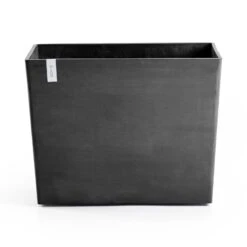 Dieser imposante Pflanzkasten in trendigem Betonlook macht unter anderem als Raumteiler oder Abgrenzung eine ausgezeichnete Figur. Dank der stabilen Rollen ist der Pflanzentrog ‚Paris‘ von Ecopots mobil und für flexible Begrünungskonzepte die richtige Lösung. Dabei besteht das dunkelgraue Pflanzgefäß aus stabilem witterungsbeständigem Recyclingmaterial.