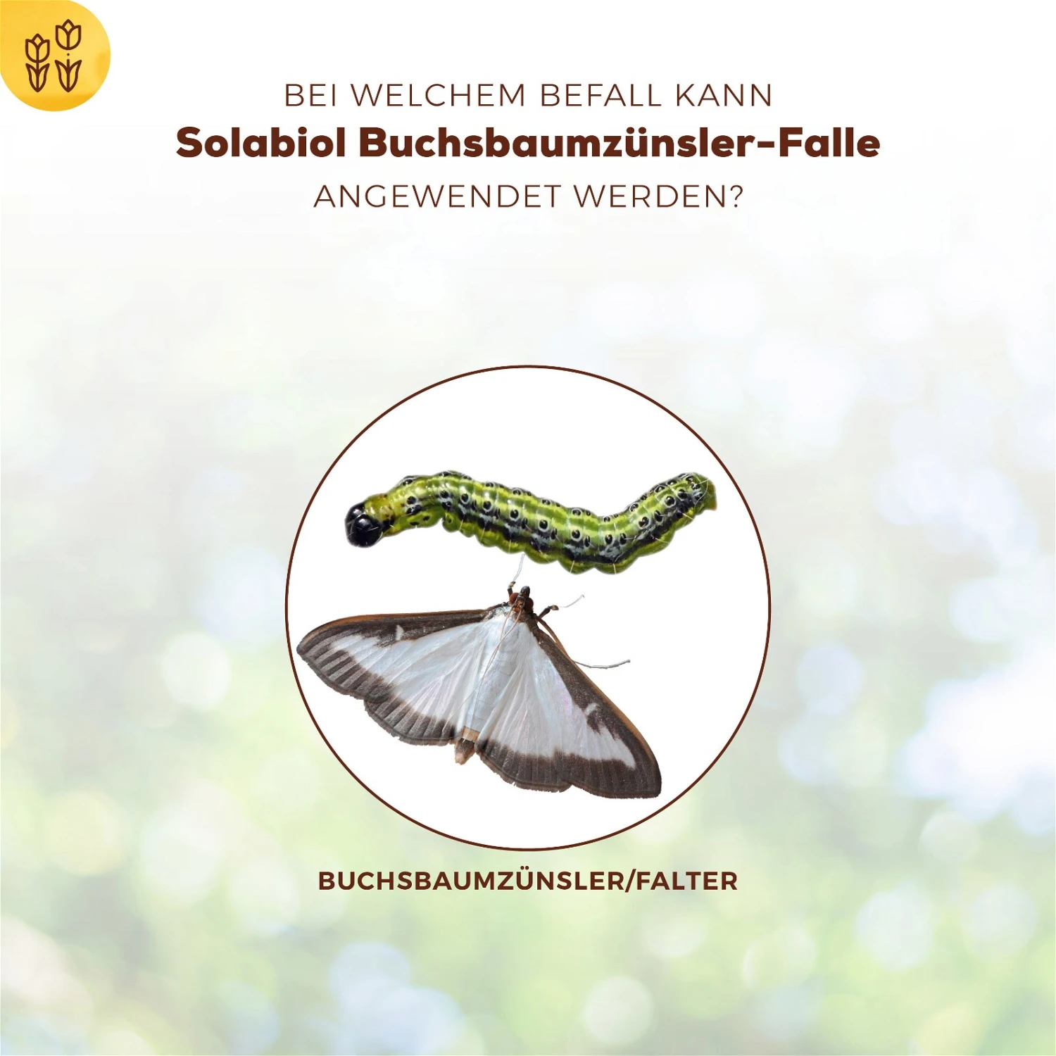 Die Buchsbaumzünsler-Falle dient der insektizidfreien Befallskontrolle des Buchsbaumzünslerfalters. Die Männchen werden durch Pheromone, welche in Gelform in die Falle eingefüllt werden, angelockt und fallen in den präparierten Behälter. Dadurch wird der richtige Behandlungszeitpunkt für ein Insektizid, wie Schädlingsfrei Lizetan® AZ oder Universal-Raupenfrei Lizetan® angezeigt. Durch die Behandlung zum richtigen Zeitpunkt kommt es zu keinen Schäden an den Pflanzen. Im Nebeneffekt wird die Befruchtung der Weibchen und somit die Fortpflanzung vermindert. Die robuste Zünslerfalle ist sehr witterungsbeständig und stabil, wodurch sie mehrere Jahre verwendet werden kann.
