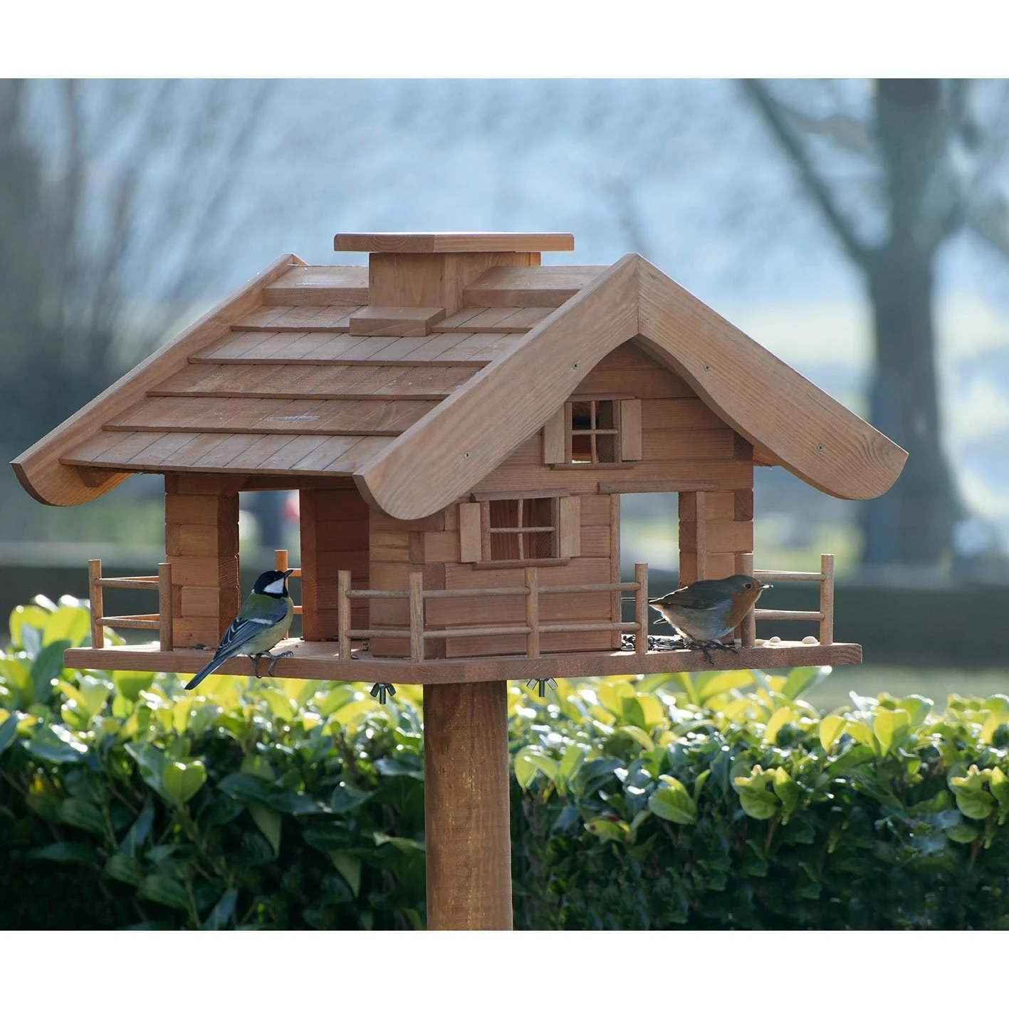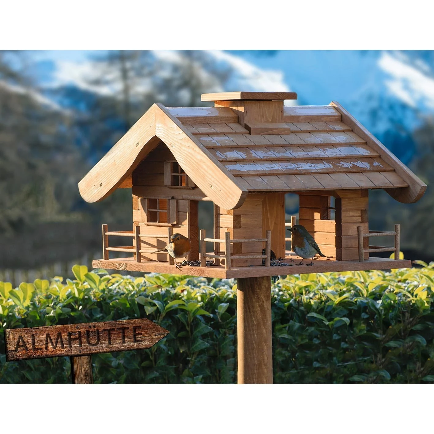 Ein Blickfang für Ihren Garten ist das Vogelfutterhaus Almhütte, das mit liebevollen Details besticht. Das Vogelhäuschen in Blockhausoptik aus bernsteinfarben lasiertem Holz bietet mit seinem großzügigen Futtersilo viel Platz für hungrige Vögel. Mit dem passenden Ständer lässt sich die hübsche Vogelfutterstelle leicht aufstellen.